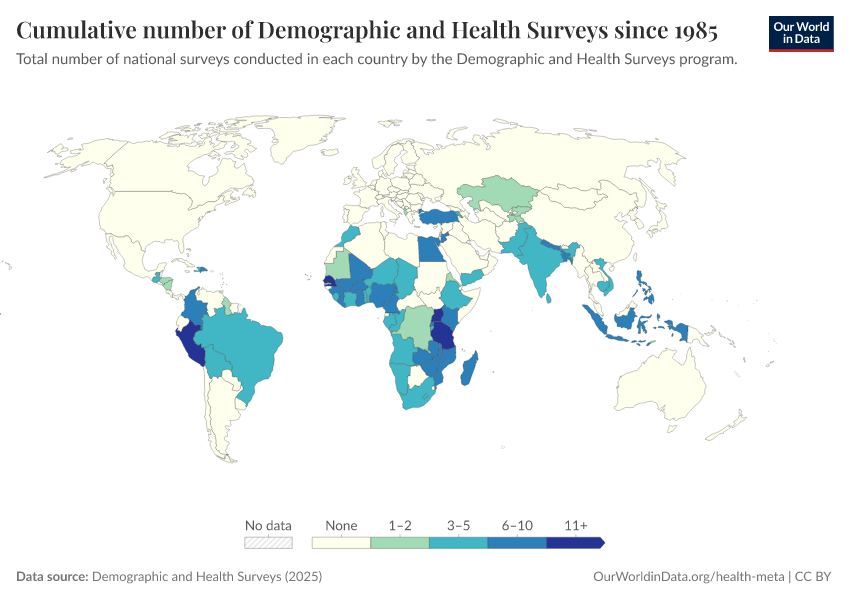 Saloni Dattani (2025) - “The Demographic and Health Surveys brought crucial data for more than 90 countries — without them, we risk darkness” Published online at OurWorldinData.org. Retrieved from: 'https://data-unoosa-launches.owid.pages.dev:8789/20260224-141219/demographic-health-surveys-risk.html' [Online Resource] (archived on February 24, 2026).BibTeX citation