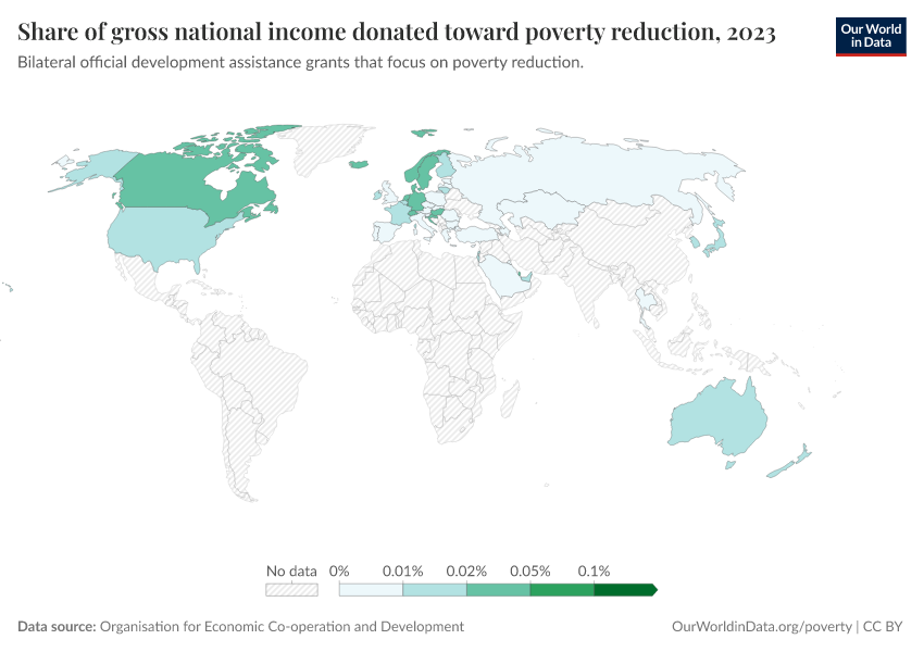“Data Page: Share of gross national income donated toward poverty reduction”. Our World in Data (2026). Data adapted from Organisation for Economic Co-operation and Development. Retrieved from https://data-unoosa-launches.owid.pages.dev:8789/20260105-133053/grapher/donated-official-development-assistance-grants-for-poverty-reduction.html [online resource] (archived on January 5, 2026).How to cite this data