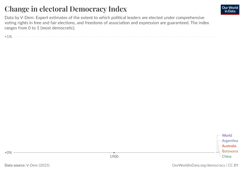 “Data Page: Electoral democracy index”, part of the following publication: Bastian Herre, Lucas Rodés-Guirao, and Esteban Ortiz-Ospina (2013) - “Democracy”. Data adapted from V-Dem. Retrieved from https://data-unoosa-launches.owid.pages.dev:8789/20260119-070102/grapher/electoral-democracy-index.html [online resource] (archived on January 19, 2026).How to cite this data