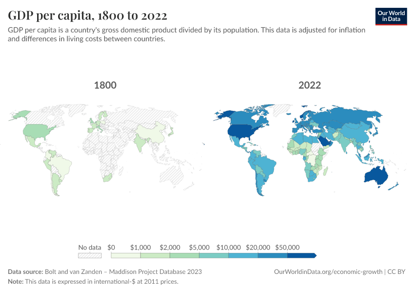 - For more frequently updated estimates since 1990, explore our chart of GDP per capita from the World Bank.
