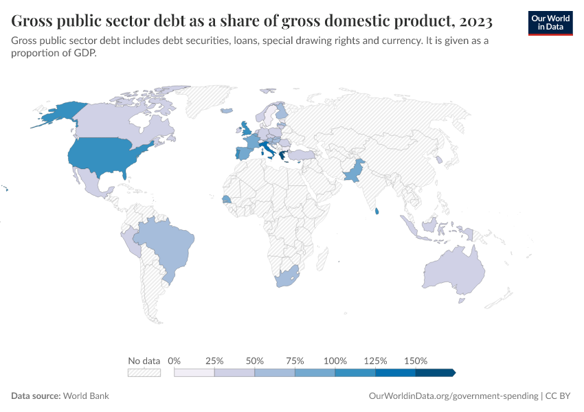 “Data Page: Gross public sector debt as a share of gross domestic product”. Our World in Data (2026). Data adapted from World Bank. Retrieved from https://data-unoosa-launches.owid.pages.dev:8789/20251120-211749/grapher/gross-public-sector-debt-as-a-proportion-of-gdp.html [online resource] (archived on November 20, 2025).How to cite this data