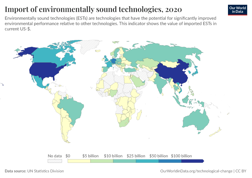 “Data Page: Import of environmentally sound technologies”. Our World in Data (2026). Data adapted from UN Statistics Division. Retrieved from https://data-unoosa-launches.owid.pages.dev:8789/20260130-180113/grapher/import-of-environmentally-sound-technologies.html [online resource] (archived on January 30, 2026).How to cite this data