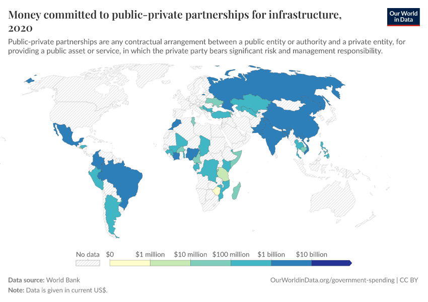 “Data Page: Money committed to public-private partnerships for infrastructure”. Our World in Data (2026). Data adapted from World Bank. Retrieved from https://data-unoosa-launches.owid.pages.dev:8789/20251120-211749/grapher/money-committed-to-public-private-partnerships-for-infrastructure.html [online resource] (archived on November 20, 2025).How to cite this data