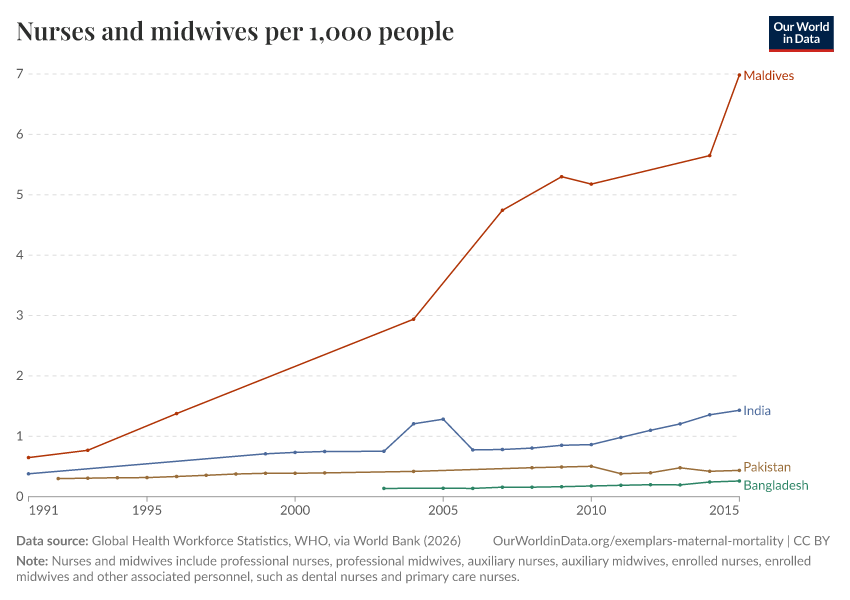 “Data Page: Nurses and midwives per 1,000 people”. Our World in Data (2026). Data adapted from Global Health Workforce Statistics, WHO, via World Bank. Retrieved from https://data-unoosa-launches.owid.pages.dev:8789/20260202-181317/grapher/nurses-and-midwives-per-1000-people.html [online resource] (archived on February 2, 2026).How to cite this data
