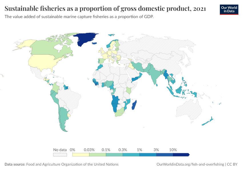 “Data Page: Sustainable fisheries as a proportion of gross domestic product”. Our World in Data (2026). Data adapted from Food and Agriculture Organization of the United Nations. Retrieved from https://data-unoosa-launches.owid.pages.dev:8789/20260130-180113/grapher/sustainable-fisheries-as-a-proportion-of-gdp.html [online resource] (archived on January 30, 2026).How to cite this data