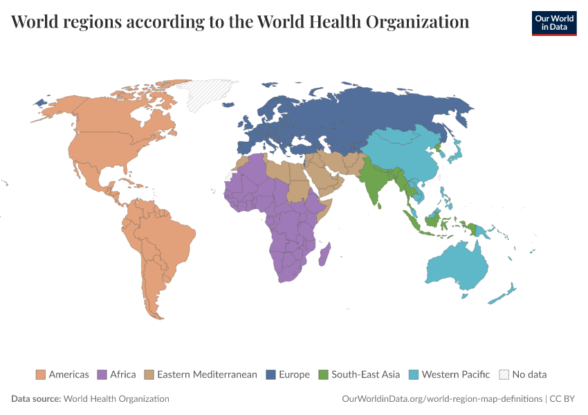 “Data Page: World regions according to the World Health Organization”. Our World in Data (2026). Data adapted from World Health Organization. Retrieved from https://data-unoosa-launches.owid.pages.dev:8789/20260224-141219/grapher/who-regions.html [online resource] (archived on February 24, 2026).How to cite this data