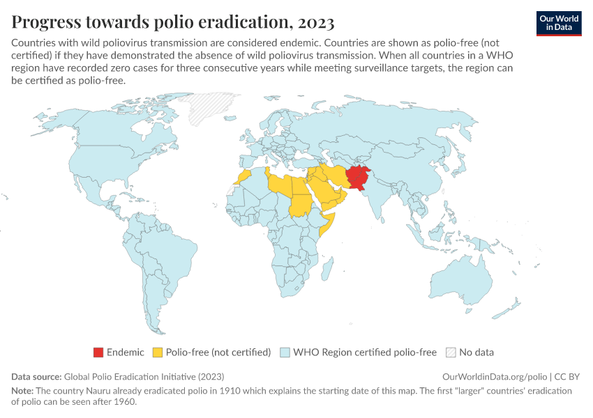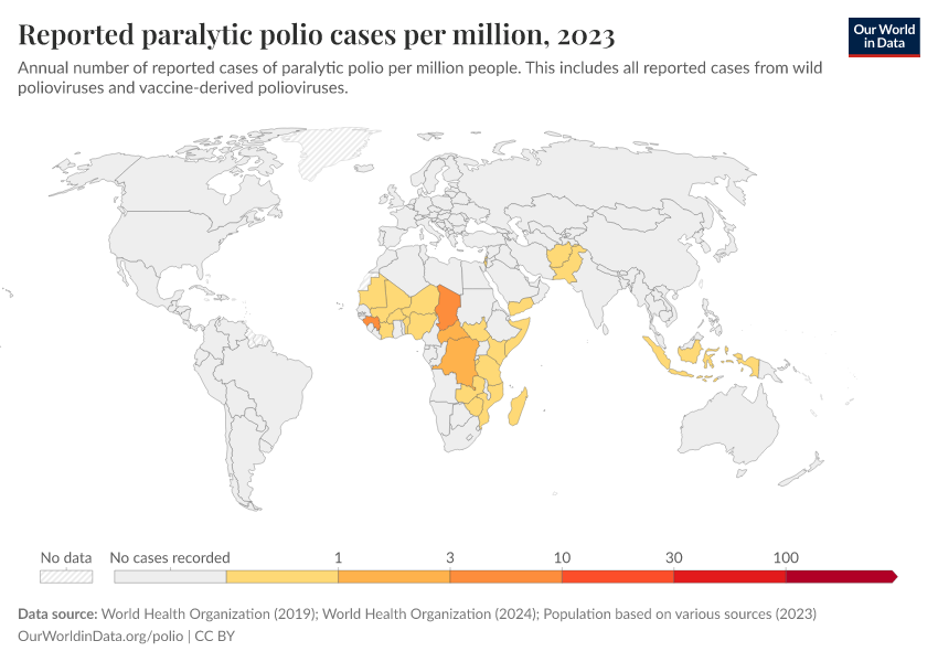 Saloni Dattani, Fiona Spooner, Sophie Ochmann, and Max Roser (2022) - “Polio” Published online at OurWorldinData.org. Retrieved from: 'https://data-unoosa-launches.owid.pages.dev/polio' [Online Resource]BibTeX citation