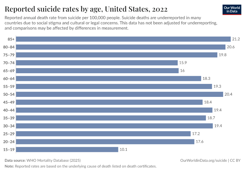 On this page, we show data on the prevalence of suicide across the world, its risk factors, and how these trends are changing over time.